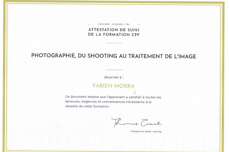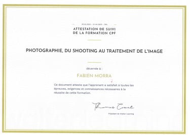 Attestation de formation en photographie
